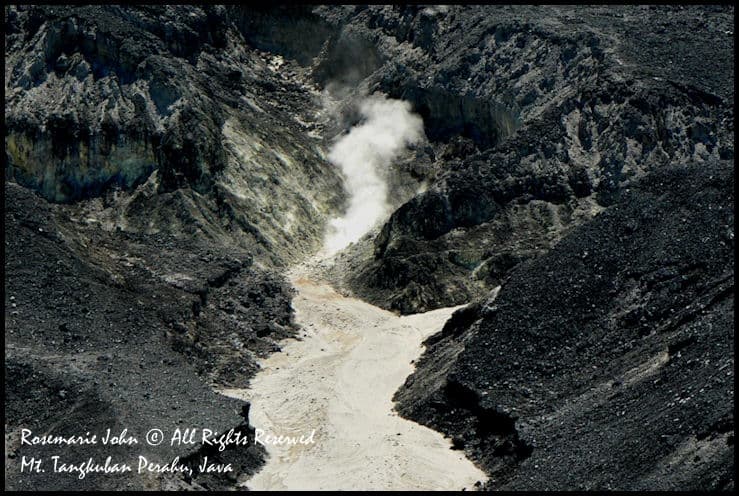 Along misty mountain landscape and lush green tea plantations of Bandung lies the fabled crater of Mt. Tangkuban Perahu, the only ‘drive-up’ volcano on the island of Java, West Indonesia. The three-hour drive from Jakarta to the craters edge takes you through long winding pebbly roads, dense shrub, enthusiastic hikers, toiling farmers and occasional cars. But just when you thought you were lost on the serpentine road, the crater reveals itself in all its splendour.