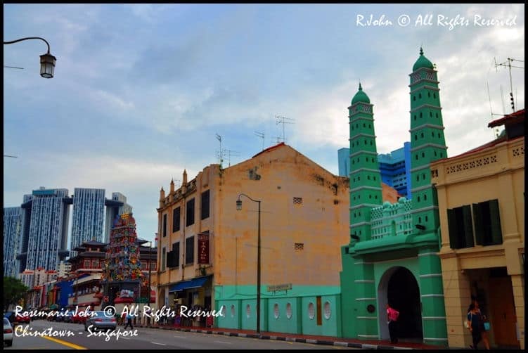 The Jamae Mosque just a few doors down located at 218 South Bridge Road built by Tamil Muslims in the 1830s, is one of Singapore’s oldest mosques. Its turquoise green in colour and has steep minarets.