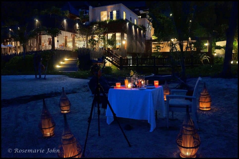 Every mouthful was a tingling sensation of indescribable delight. The night seemed to stand still. The sound of the sea calmed our senses, the breeze caressed our brows and we felt a sense of peace engulf us. We spoke way into the night with each other and with our Chef Terence and our personal waiter for the night, Hanafia who regaled us with stories of the island and its surroundings. As the night wore on we were visited by some curious visitors from the forest. The shy wild boars that walk the beach at night looking for food hovered around the area looking for some free bites. They seemed to know Terence quite well who shooed them off but they lingered as dark silhouettes flitting in the shadows of the dense undergrowth.