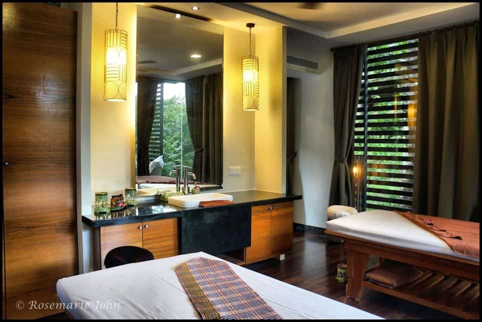 The villas are cool and cosy. The daybeds are a great way to lounge lazily and watch life go by around the lotus pond. The large bath tub inside definitely helps to soak up any stress you have in your tired body and that walk up and down the resort certainly helps in blood circulation. Not to mention the crisp clean air that you breathe throughout the stay. But there are other additional options to relax as well. We pampered ourselves to a great massage and embarked on an interesting scent adventure at the Spa Village.